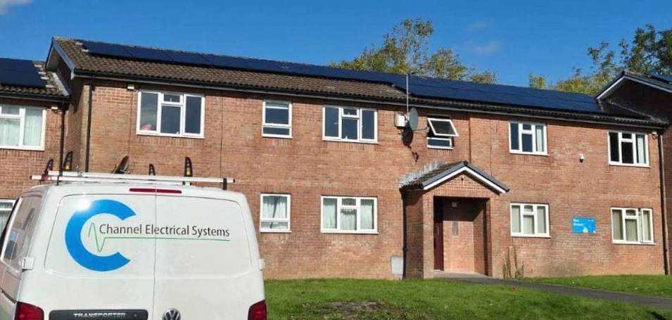 Channel Electrical Systems travelled to Bridgend and installed solar panels with battery storage for all dwellings on the Brackla housing estate. Each 3kW photovoltaic (PV) system captures solar energy so as to supply electricity to the homes, while the integrated battery storage allows excess energy to be stored for later use, reducing Brackla's reliance on the grid and lowering energy costs.
